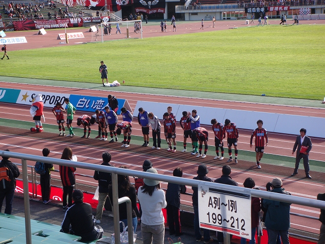 昨日厚別から帰る途中、駐車場側の歩道を歩いて帰る三上くんを見かけました。うちの人が「がんばってー」と声を掛けたら、はにかんでニコッとして頭を下げてくれました。ユースっ子とはいえトップのメンバーに入ったら一緒にバスに乗って帰るもんだと思ってたからちょっとビックリしたw私も「高円宮杯がんばって!」って声かければよかったな・・・と思っても後の祭りでしたが。