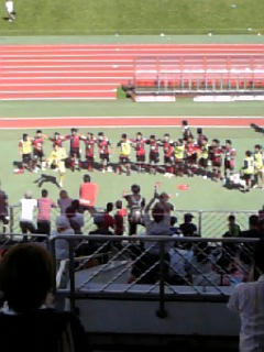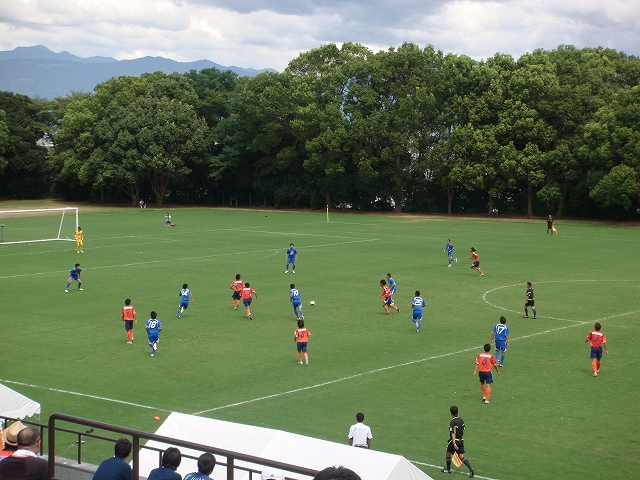 ここで天皇杯愛媛県代表決定戦を見ることに。言うまでもなくオレンジ色のユニの方が愛媛FCしまなみです。青いユニの方はボール持ってもプレッシャーかけられてすぐ取られたり、判断が悪くて相手選手をしょってる味方にパスしちゃったりという、どっかで見たような既視感アリアリの試合運びw結局なかなかシュートまで形を作れずじまいで、4-0で試合終了。最初はしまなみの方を応援してたけど、何だか青ユニに親近感を持ってしまって最後は自然と青ユニの応援をしてしまったw