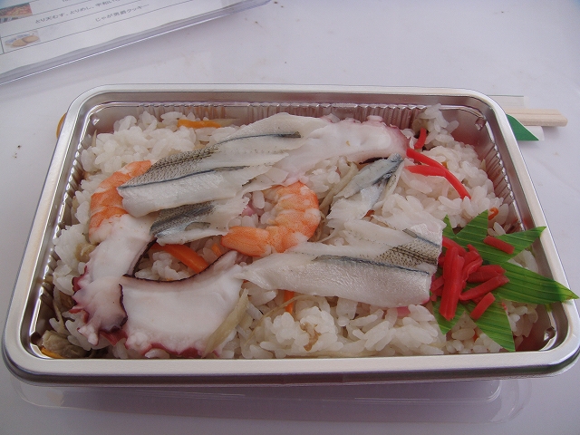 こちらは海鮮寿司。酢飯の上に、酢でしめてあるタコやエビや魚(キスだったかな・・・?)がのってます。これまたあっさりでうまかったー。