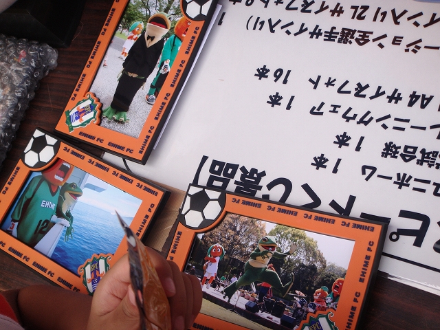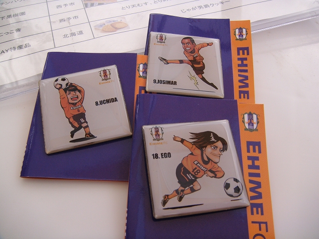 一緒にオーレくんたちが出てくるかと思ったけどまだみたいなので、グッズショップに行ってみた。こちらでは選手のピンバッジが売っていて、3個買った人はスピードくじを引けたのですが、その景品の中に「一平くん名シーン写真たて」というのがあって、これをぜひゲットすべく3個買ってみたのですw
