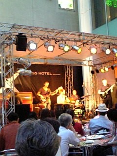 勤務先が近いので毎年聴きに行ってる「CROSS CITY JAZZ LIVE」。今年は8/9から、昼の12:30と夜18:30の1日2回のジャズライブをやってます。いままで夜の部は聴いたことなかったんだけど、今年はビール飲みながら聴いてみっかーということで行ってみたのだが、18時にはすでに満席。しかたないので傍らに立ってビール片手に聴いてました。しかしビール片手だと拍手とかできないのが難点だな・・・。ていうか毎年客増えてるなー。徐々に浸透してってるのかな。