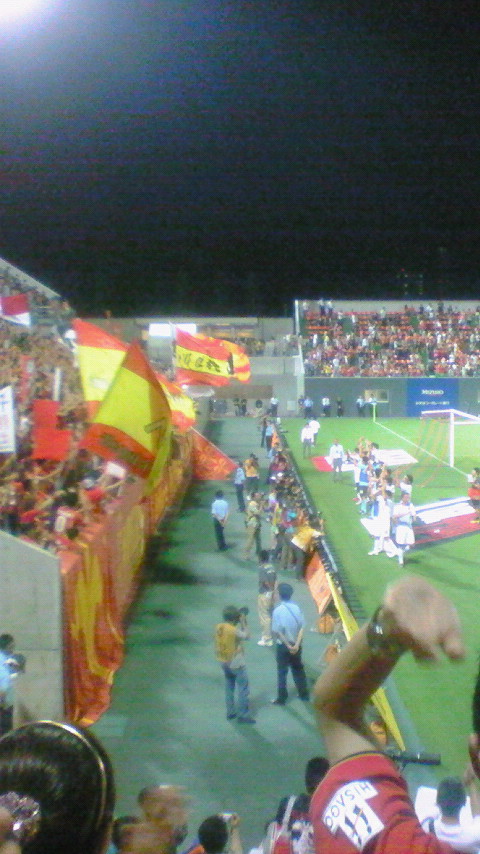 大宮が攻めあぐねてるうちにセットプレーくずれから名古屋が得点。一人少なくてもわかんないもんだ。