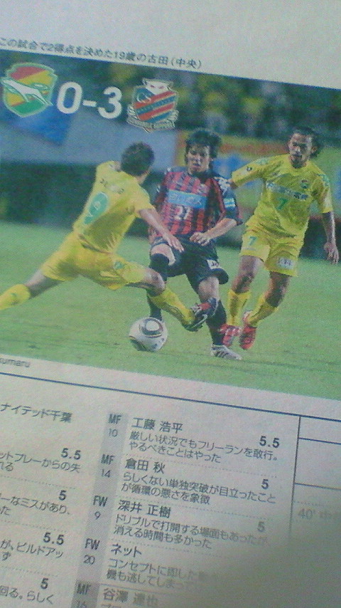 エルゴラでは古田くんがMOM。涼しい北海道から来た札幌の選手が千葉よりも走るなんてありえねーだって。札幌で暑い日にしつこく走り込んだのが実を結んだのかな。しかし3日間暑かった…。