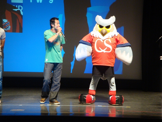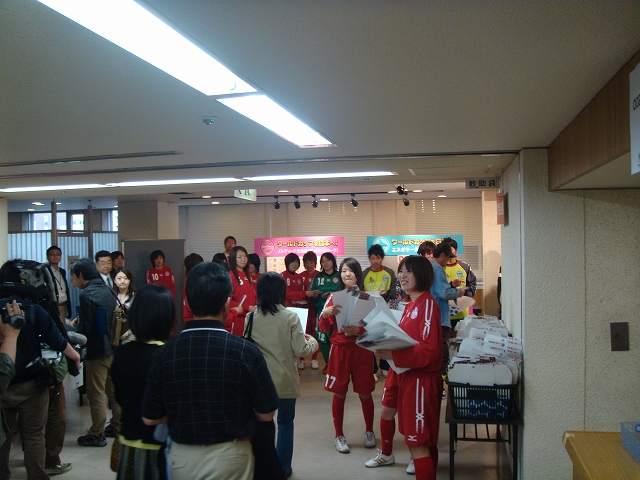 受付後、ノルディーアの選手とエスポラーダの選手たちが待ちかまえていて、試合のスケジュールなどを配っていました。ドーレくんもいて私が、「わっ!ドーレくんだ!」って言ったらドーレくんは私の肩にそっと羽を添えてくれましたwくちばしがコツンと頭に当たったw