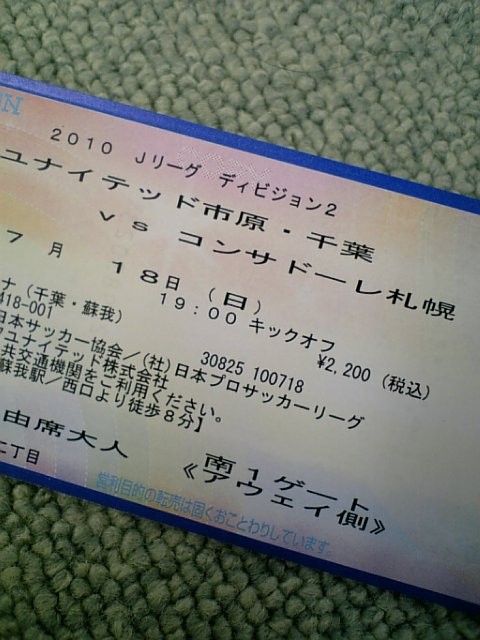 フクアリの千葉戦のチケットを買ってきた。W杯中断明け最初の試合だし、ウチのサポは勝手にフクアリをホーム扱いしてるし(失礼な話だw)、アウェイゴル裏はかなりのキモサポが殺到すると予想されるので、発売と同時に買ってきた次第です。
