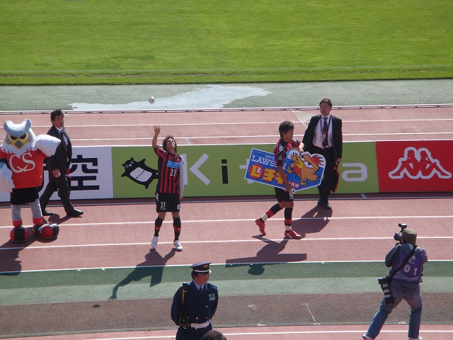 昨日は家に帰ってさっそく録画しておいた試合をもう一回見たよー。古田くんの得点シーンの時はみんなバシバシ叩いてたねw一人だけひざ蹴り入れてる人いたけどwww携帯サイトも古田くんへの手荒い祝福だったが、みんな叩いてるのにハガーの足だけがなぜか不自然に上がってましたねw