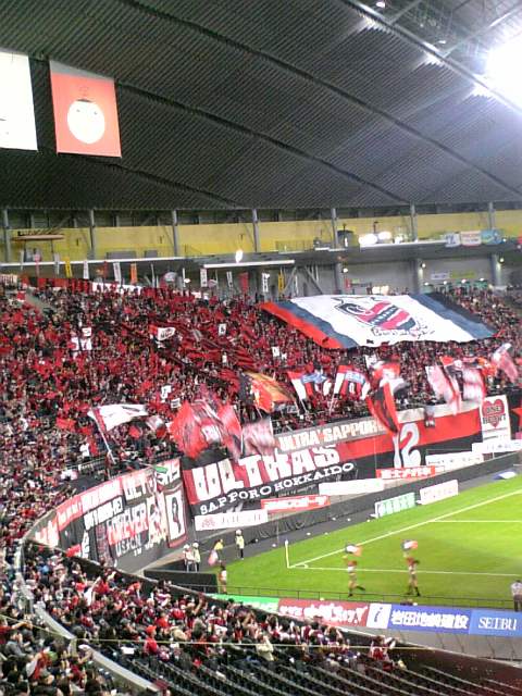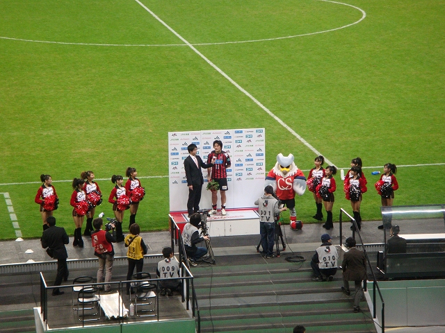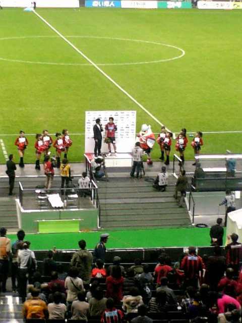 ライブ見て、前回もらい忘れたスカパーの小冊子とシールもらって、塚本選手の募金したらもうやることなくなっちゃったので、今回はアエーB自由席でまったりビールを飲みつつ、試合前の時間を過ごしてみた。今までいろんなところに座ったけど、ドームで見るサッカーはどこから見ても見やすいなぁと思う。