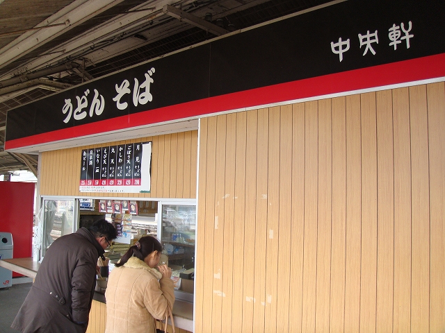 鳥栖駅に着いて、まず6番ホームで念願のかしわうどんを食べる。