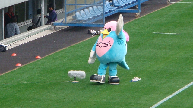 ウィントスくんは何回か見たものの、あのお方がなんぼしても見当たらない・・・今日は休みなのか?開幕戦に来ないなんてどういうことなんだ。あのお方に会えないなんて、私は何のためにベアスタに来たのか(試合見るためだろ)キーッ!と思った矢先・・・。いたっっ!!