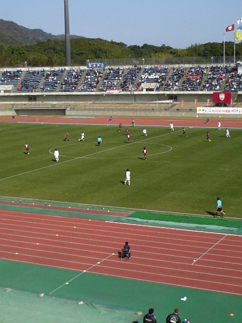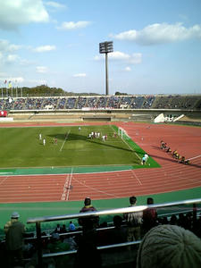 春野競技場へは、桂浜からタクシーで向かいました。このとき乗ったタクシーの運ちゃんがサッカーを昔かじったことがあるらしく、会話が弾みました・・・いや、運ちゃんがほとんど勝手に話してただけだけど。ただ、代表の試合のことについて、「全日本の試合」っていう言い方をするのはさすがに時代を感じましたw