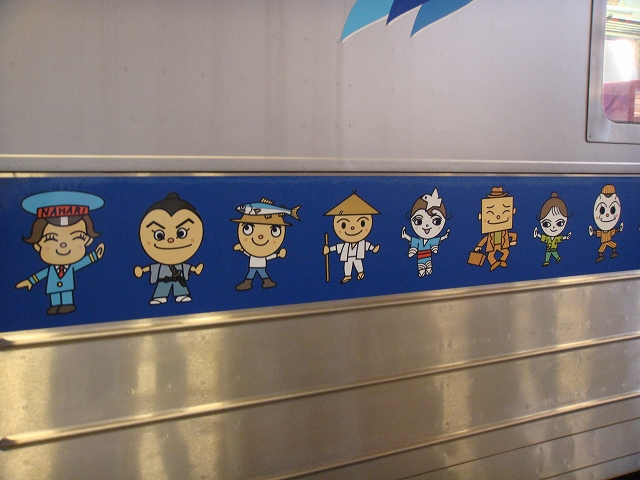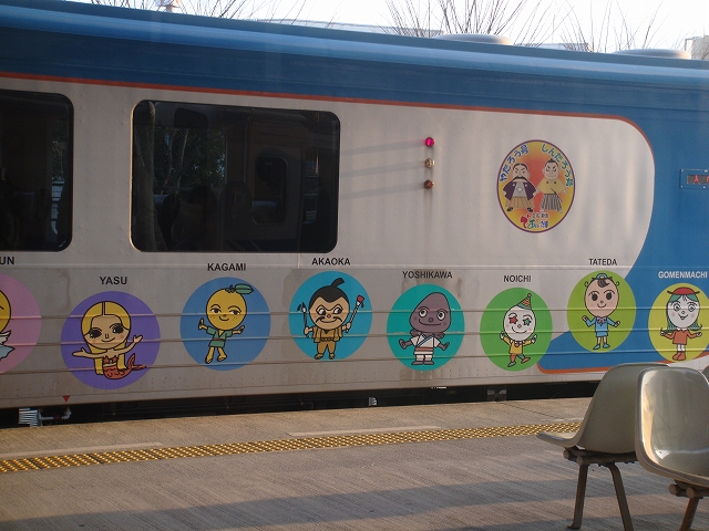 土佐くろしお鉄道の車両。沿線の駅にはそれぞれにキャラクターがあり、その絵はやなせたかしが描いている。