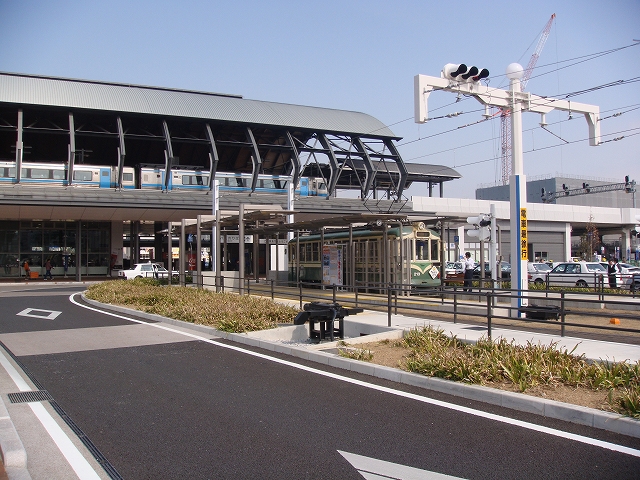 高知市内を走る土佐電鉄もこの高知駅からの始発。高架にはJRが停車中、路面電車もその下に停車中のところを撮ってみる。なかなかおもしろいつくりでワクワクしてきたw