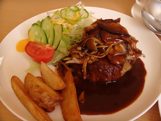 ハンバーグがおいしいらしいので、当然注文。私はハンバーグカレーを頼んだが、カレールーもコクがあっておいしかった。試合時間が近づくにつれて、用意された席もほぼ埋まっていく。