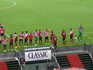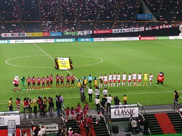 こんなことってあるんだね。結局あとから来た方が空いてる席に座ってくれることになったんだけど(S席ガラガラだしねw)。ついでにもひとつ試合に関係ない話ですが、我々のすぐ後ろに座ったカポーが終始試合そっちのけでキャッキャウフフしてて非常に気になりまして。ハーフタイムに「初デートかね?若いのぅ」とか思って顔チラ見したら結構歳いってて「お、おぅ」ってなりましたw…ま、試合いっさい見てなくてもウチにお金落としてくれたわけだからね。うん。
