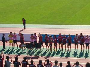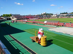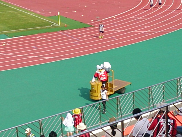 しかしいいお天気だったー。青空の下でサッカーを見ながらビールを飲むのは最高です。ドーレくんも客席に乱入してきたと思ったら客のヨコに座って写真撮ったり、知り合い?を見つけて挨拶したり。