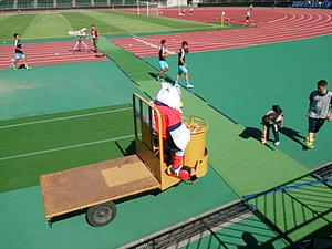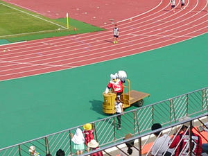 ハーフタイムに自分で運転して登場したドーレくん。車両の「ブーン」とか「キキー」(→ブレーキ)って音を鳴らして運転してるのが何か笑えるw