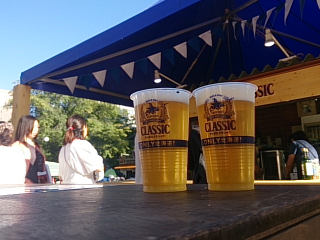 試合終了後はオータムフェストに行ってきたよ。今年から10丁目会場にクラシックガーデンができたので、まずはそこを目指します。そして赤黒のユニ着て堂々と祝杯を上げる。
