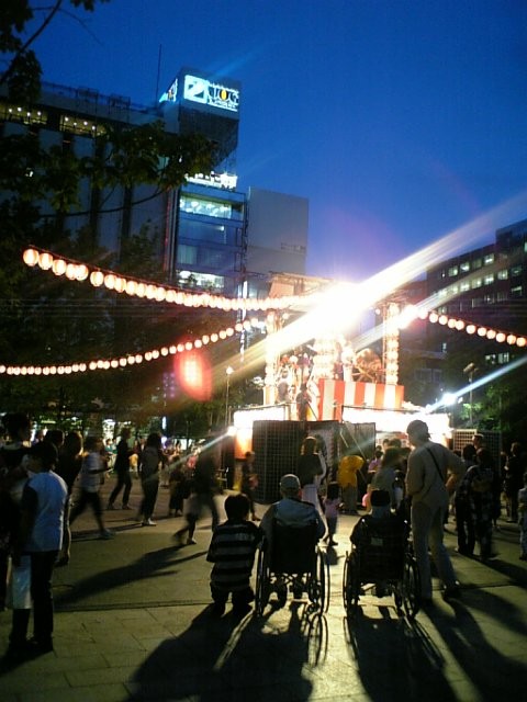 ほろ酔い気分で2丁目に移動すると、子ども盆踊りが始まっています。カラフルな浴衣を着ためんこいめんこい子どもたちに混ざって、大人もたくさん踊っていました。私も踊りたい気分にかられたが、かたわらでビール飲みながら(売店があったのでまた飲んでしまった)眺めていました。中には観光で来たと思われる外人さんもいて(すごい美人だった!)、しかも手の動きとか優雅で上手だったwあと、すごいオーバーリアクションなオカマっぽい人とかもいて、人間ウォッチング的にとてもおもしろかったですw