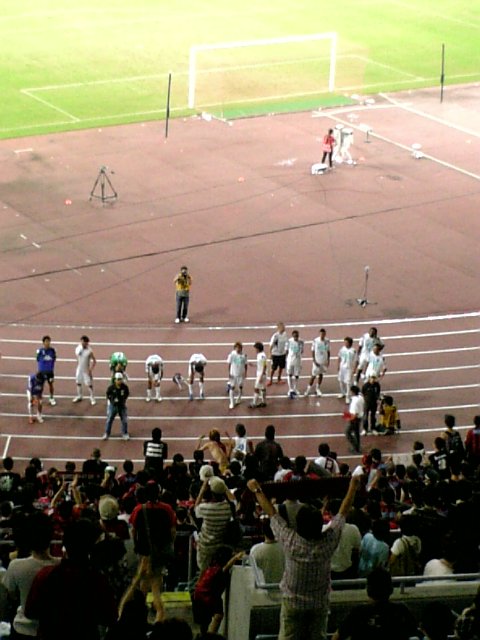 ま、今年は何回も同じことをブログに書いてる気がするが、私もねばり強く我慢して応援していきますよ。ヘタなりにちょっとでも成長はしてると思うし。ていうかそう信じたいwそうじゃないとさすがに応援するモチベーション下がるし。とりあえず今回は、古田くんとハハエルのデビューを生で見られたことが一番の僥倖でしたな。よかったねぇ、若さあふれるプレー。一緒に出てるオジサンたちも(そんなにオジサンでもないが)、古田くんのために走ってお膳立てしてやれよ!と見ていて勝手なことを思ったね。ハハエルはあんまり期待してなかったのでまぁこんなもんかなと・・・いや、今後期待してますよ!写真は小さいけど古田くん。「選手交代・・・なんか27って書いてるっ!!」って、我々も大興奮でした。