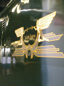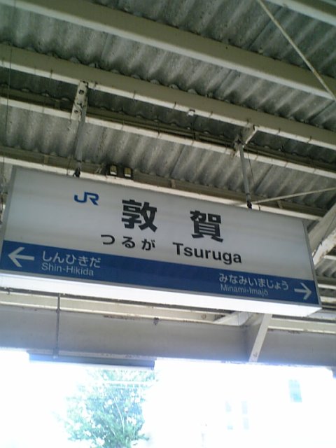機関車つけかえのため敦賀駅で約15分停車です。大阪には12時52分到着予定。おひるに焼きさばすしを買い込んでふと列車の窓をみたら赤黒のタオマフを発見!!どこにでもいるなウチのサポ…。