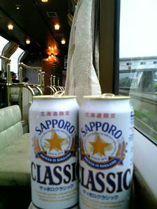 サロンカーです。いままだ長万部のあたり。時間がゆっくりと過ぎていきます。飲むお酒が無くなるのが一番の不安DEATH。