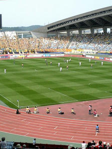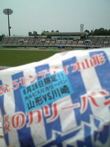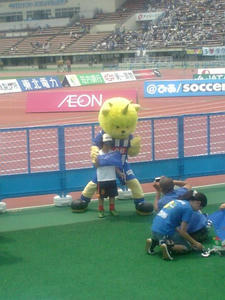 0-0です。川崎の攻撃は怖いが、山形もひけをとらずいいサッカーしてるなぁ。いやー他にもいろいろと勉強になります。これは試合前のファンサ中のディーオだが、暑くて肩で息してたwwwがんばれディーオ!