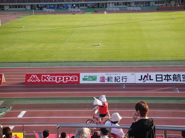 そういえばハーフタイムの時に、ホーム側から客の「おおー」というどよめきが聞こえてきて、何だ何だ?と思ったら、ドーレくんが激チャリしてたwしかも頭低くして競輪選手みたいだったよwww写真撮ろうにも前を風のように走り抜けて行って撮りそびれたわ。あれは一体なんだったんだろう・・・。いつものこんなのんびりとしたドーレくんとは人が・・・じゃないや梟が違ったようだったわ。