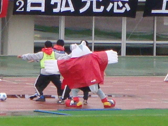 雨の試合は見てるのも少々しんどいが、スタンドに映える赤いkappaカッパが美しいですな。カッパのおかげで、観客数も2割増くらいに見えるしねw