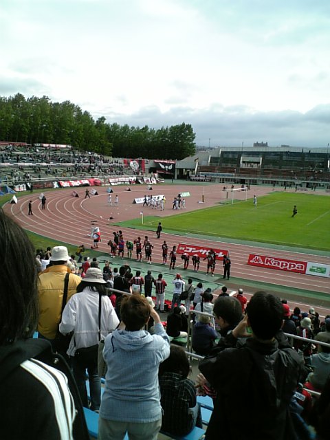 審判団が何ともビミョーな感じだったが自分もよぅわからんので、周りの客がストレスためて審判にヤジ飛ばしてても静観していたのだが、最後に砂川がスローインしようとしたときに「ぴっぴっぴ~」って終わった時は思わず、「ケチケチケチっ!!」って連呼してしまいました。前にいたおじさんがふり向いて、「ハッ・・・!感情的になってしまった。これじゃヤジオヤジと一緒だウワーン」と即反省し、「すっすみません」って慌てて謝ったんだけど、笑いながら「気持ちはわかります」って言ってくれたおじさん、ありがとう。・・・でも反省。