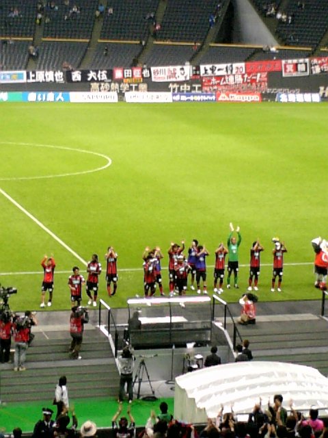 なんというか、お粗末な結末でしたね・・・。何で3-0でぴしゃりと締められないんだろ。見るからに集中力の欠如が原因としか思えないわ。集中力ってサッカーのプレーの質以前の問題じゃん。気ぃ抜くなよぅ・・・。2失点目くらった時は、たぶんドームの客の大半があの甲府戦を思い出したに違いない。現に私らも顔色変えて応援して必死だったし。おかげで今日は声が枯れ気味です。