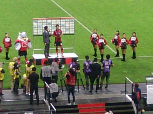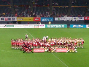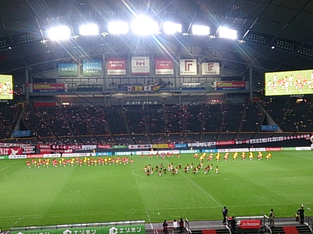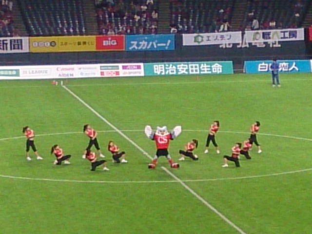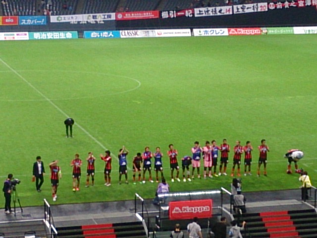 ここで若干黒いことを言えば、2点目が決まった時の千葉のベンチがものすごい喜びようだったんだよね。全員がベンチから飛び出してきて、なんつーか試合終盤の85分くらいで決勝点キタ!!みたいな。それを私は上から冷ややかな目で見て「おいおい喜びすぎじゃねぇの?ここどこだと思ってんだよ?ドームだよ??」って思いましたw