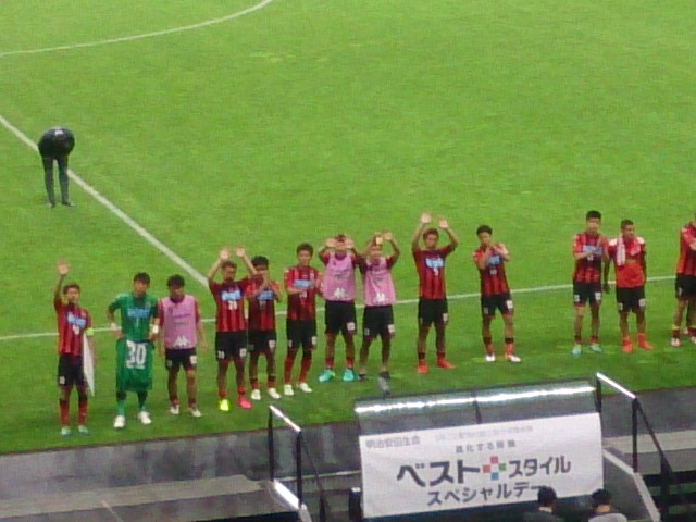 後半も開始早々にとっくんのクロスからうっちーの惜しいシーンがあったりしていい感じで入れたし、30分までには同点にしたいよねってうちの人と話してたらヘイスが決めてくれた!どう見てもオウンな気がするけど公式記録はヘイスだからヘイスのゴールでいいのだ!いやーでもヘイスってやっぱりすごい上手い。ゴールの起点になったのも、ヘイス自身のとっくんへの優しいパスだったし。次の試合では文句なしのヘイスゴールを決めてもらおう。