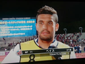 それにしてもヘイスがだんだんめんこい選手になってきて困るwほんといつもニコニコ顔だよねー。ゴールした後にアウェイゴル裏でもちゃもちゃしてる時、みんなうれしそうでビール吹くかと思ったわw選手に声かけるなんて私にとっては滅相もないけど、ヘイスにだったら「ヘイス!オブリガード!!」って言える気がするw