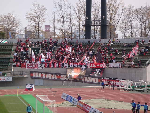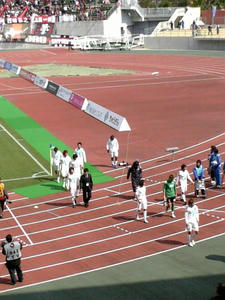 試合の内容については、いろんなところで書かれてるのと同じような感想で。決定機を逃し続けていいリズムが相手にいってしまうのも、いつものパターン。そして1点じゃ最後まで守りきれないのもいつもと同じで、もっといえば初顔合わせに弱いのもウチの伝統ですなぁorz試合前に、「岡山ってまだホームで1点も取ったことないんだってー」「じゃあ今日は岡山に点数入るな。間違いない。」って話してた通り。間違いなかったです。