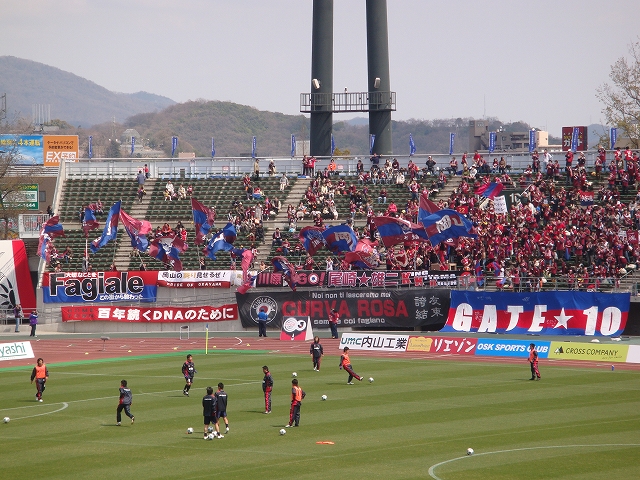 試合はアレだったけれども、ファジアーノは全体的にフレンドリーな感じがして居心地がよかった。運営の人とかボランティアの人も、みんなでJ2上がりたてホヤホヤのチームを大事に育てて行こうって空気だったな。みんな親切でニコニコしてた。赤黒のタオマフしてる私にも、アウェーツアーのチラシを渡そうとしたりw