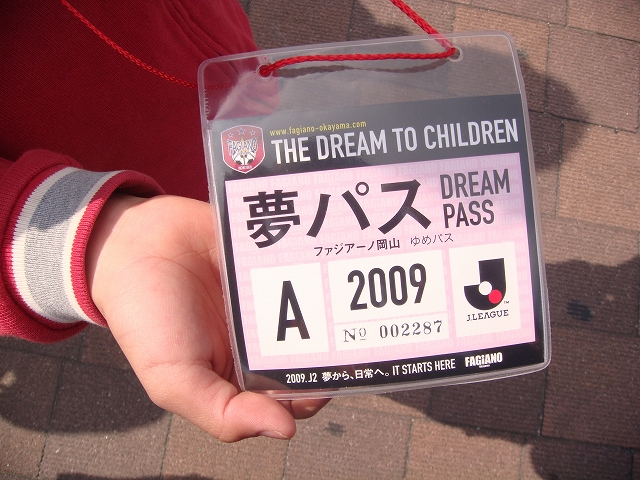 今回は、うちの人の友人ファミリー(岡山市在住)と共に観戦した。小学生の子どもが2人いるんだけど、ファジアーノでは一度名前を登録しておくとこんなパスがもらえて、1シーズン無料で見られる。