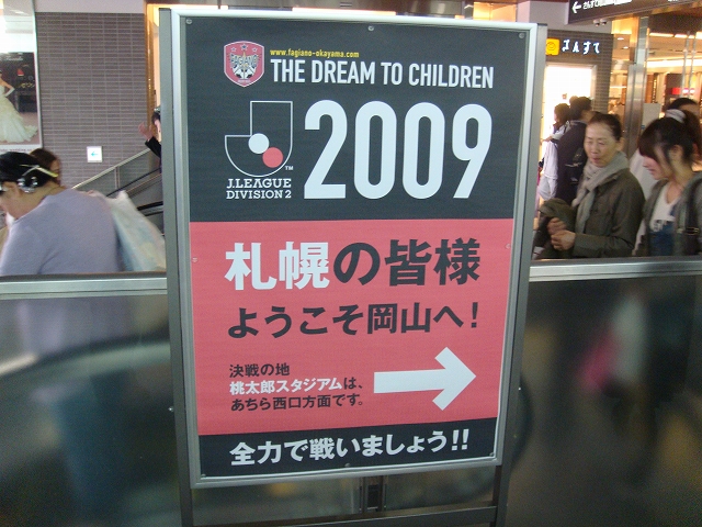 この日は岡山市政令指定都市記念マッチだったので、岡山市長が挨拶していた。最初に当たり障りのない挨拶をしたあとで、急にアウェーゴル裏に体を向けて、「札幌からいらしたみなさん!岡山はとてもいいところです。これからもよろしくお願いします!!」って絶叫していたよ。好きだなこういうの。