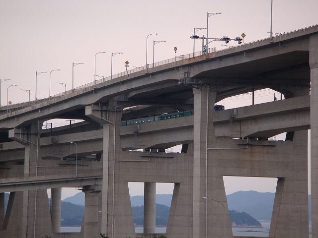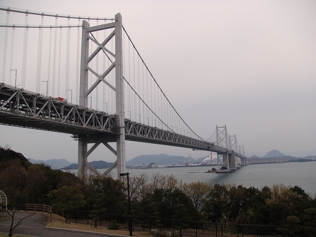 帰りに再び瀬戸大橋を通る。途中下に降りていくと展望公園的なインターチェンジがあって、そこから瀬戸大橋を見上げることができた。例によって高速料金は1000円だったけれど、そんなに混雑してるってわけでもなかったな。