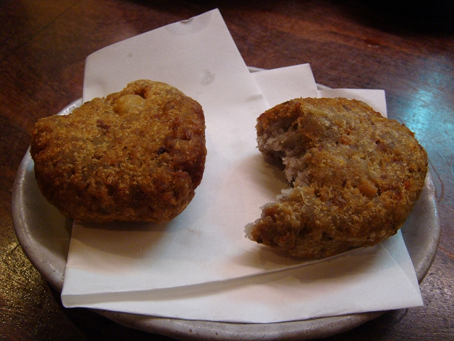 なぜかお店の人がサービスしてくれたオレンジと、コロッケのようなもの→名前忘れちゃったんだ。甘くておいしかった。観光客だと見破られたか?(バレバレだったと思うが)
