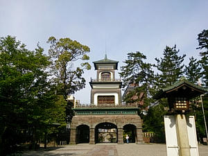最初は普通の神社かと思ったのだけど、実は前田利家公とお松を祀っている「尾山神社」という神社だったのでした。そして目を引くのが境内にあるこの門。真ん中あたりにギヤマン(ステンドグラスみたいなやつ)が飾ってあって、和洋折衷でとても珍しいの。