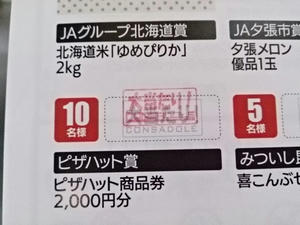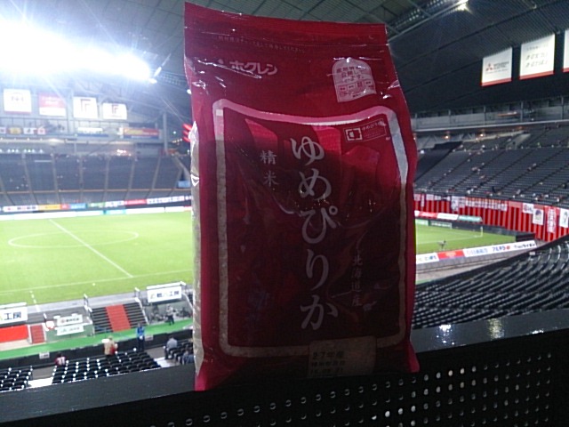 そういや久しぶりに当たったんですよ。マッチデーラッキープレゼント。うちの人に「当たったよ!」って言ったら第一声が「えー…持って帰るの重いよ」だった。まぁそうだよねw帰りに「家にホッピーない」とか言ってホッピーも買ったので、うちの人はヘイコラしながらコメ2kgと瓶数本を持って帰りましたw