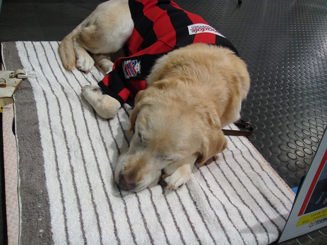 フー(白ラブ)とロビン(黒ラブ)。ロビンは元気いっぱいで、私が手を出したらすぐにスタッと立って愛想を振りまいてきました。しかしフーは相変わらずやる気なし。だってもうずっと寝てるんだもん。もうお歳なのかなぁ?触るのもしのびないくらいだったので、「フー疲れてるのかい?」って話しかけて去りました。あーそれにしてもマジでパピーウォーカーやりたい。家が賃貸で共働きの間はできないよなぁ。