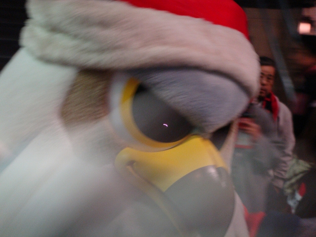 サンタドーレくんがファンサ中。写真撮っていたら、なぜかこっちに向かって煽ってきた・・・さすが猛禽類である。羽をバタバタッとしたので、残像で白くなってしまった。