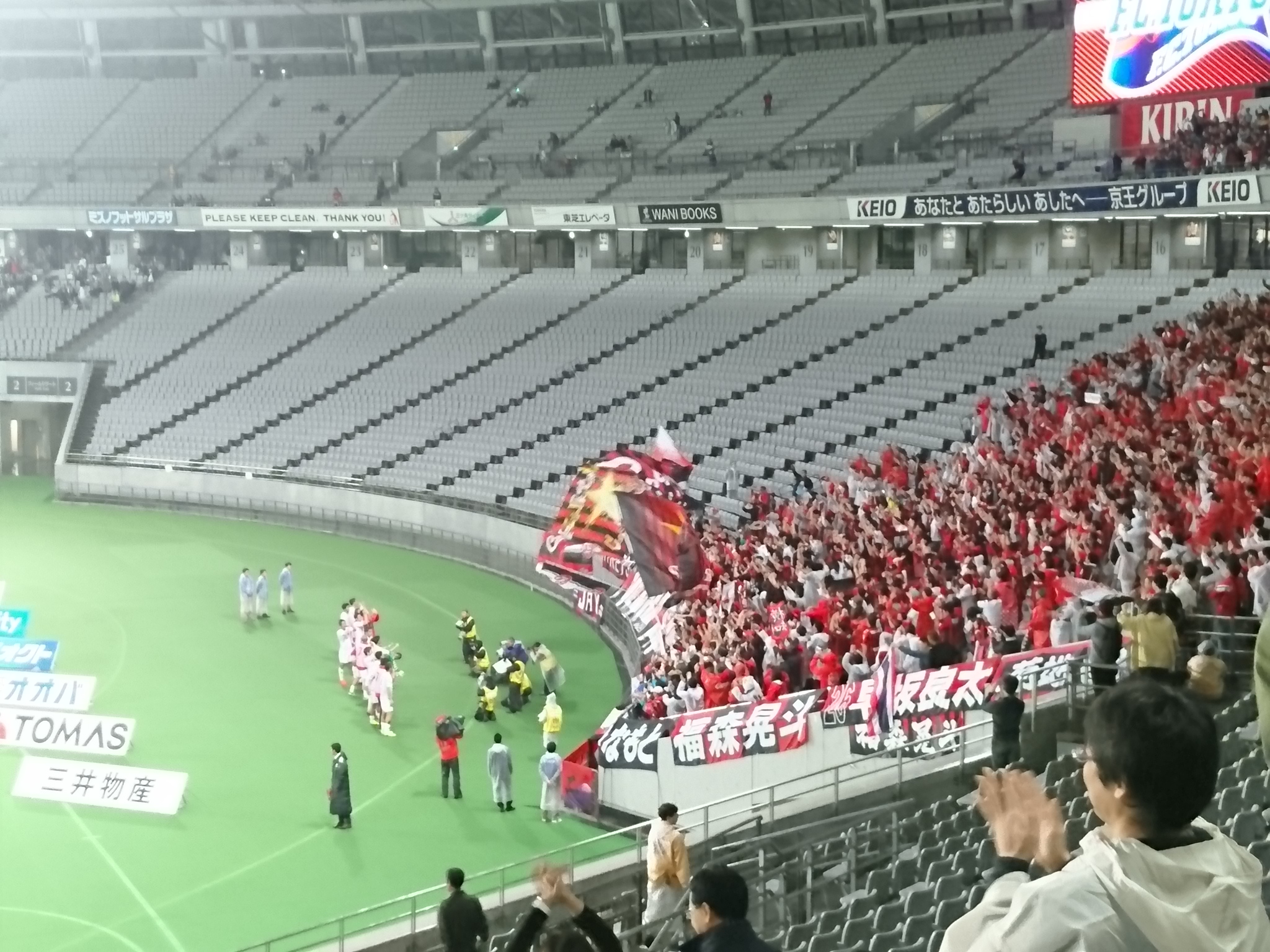 FC東京戦が土曜日にあって、今日はもう木曜日だけど、あの試合のことを思い出すとわりとまだ泣けるw我々は金出してでも快適な環境で試合を見たい派だから、5000円出してメインの屋根の下に席を取ったけど、選手がピッチ練習に出てくるのを待ちきれずに叩き出したスネアのリズムと、それに合わせるアウェイゴール裏の手拍子がだんだんと大きくなっていくのと、その後の一発目のコールで、もう私は泣いたねwここまでして今日は勝てないわけないよなって、思ったよ。