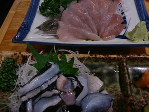 ほっけの刺身とごっこの刺身。どっちもウマい。ほっけの刺身の味が濃いの。