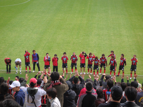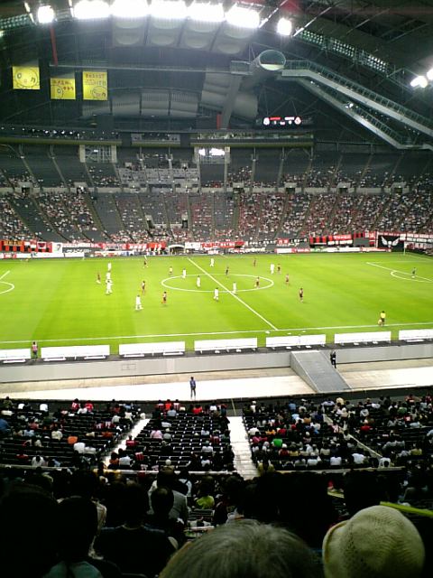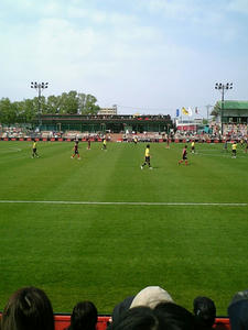 こういうときでもないと滅多に座れない日立台のメインに座れてよかった。 ほんとピッチ近いわー。 ナクスタといい日立台といい、サッカー専用スタは一生の憧れだね。 →なんかサポ喜びすぎ。 ピッチが近いから、いろんな声が聞こえて楽しかった。 「FWウラ狙えよ!!」→坪内 とか、「さぁ行きましょう!!」→主審氏 とか。 主審の北村さんは、スローインの時に2回くらい言ってたな。ウケた。