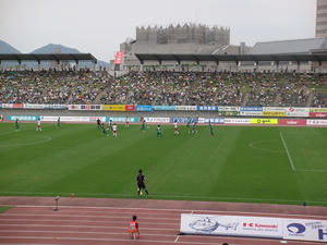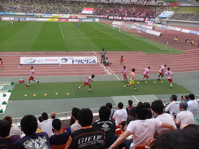 試合の中身はもう今さらなんでサラっとですが、王様のPKは遠目からでも「あ、コレPKだよね」ってわかりました。王がすごくいい動き出しで相手が全然遅れて行ってたからね。どうせだったらそのまま行って王の得点を現地で見たかったよー。でもとっくんも気づけば得点ランキングトップまであと1点ってすごいね。王は後半もいい感じだったから、次節こそ得点を期待しております。