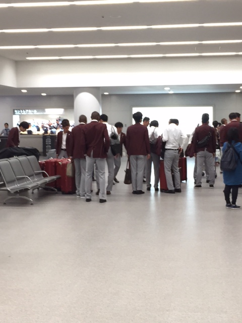そんなことで、セントレアで荷物待ち中の大男の軍団を遠目から激写。みんなでたくさんのスーツケースを手分けして運んでいったよ。小野だって例外なく。あと、小野は全然普通の人にサインくださいとか言われてたwやっぱすごいね。
