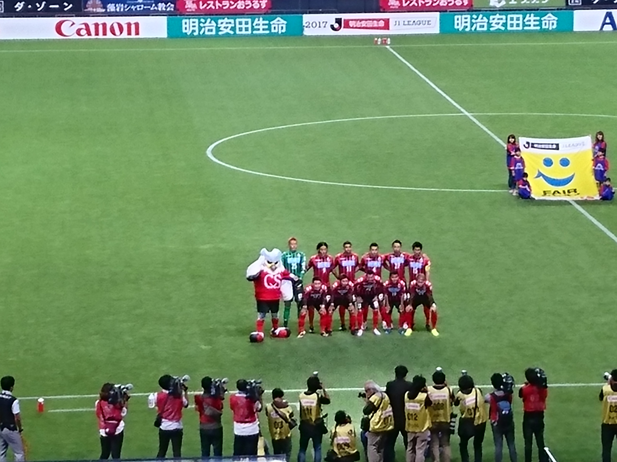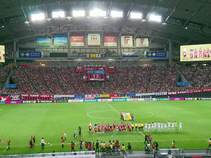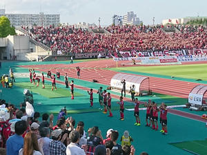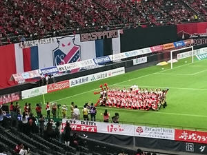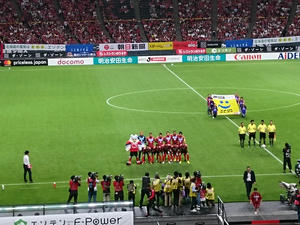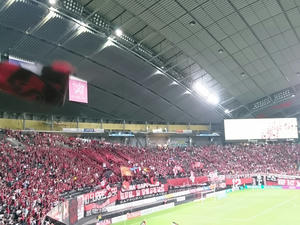 もちろんJサポも同様に応援しました。見たのは浦和、鹿島、マリノス、セレッソ、F東、清水、名古屋、神戸、広島、横浜FC、徳島、愛媛、山口かな。徳島サポさんに「徳島がんばれ!」って言ったら「今年は絶対昇格します!」って返してくれたのwだから「待ってます!」って言ったよ。もちろんウチが残留するのが前提だからね。あと、赤黒じゃない人がこっちに寄ってきて、誰か周りに知り合いでもいるのか?と思ったら我々に「ヘイスナイスゴール」って告げてピヤーって走ってってウケたw