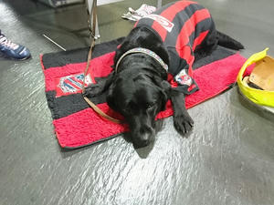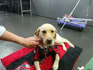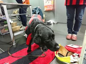 昨日はドーム着いてすぐ、犬方面へ直行。この日は黒ラブのワッフルと白ラブのノエルでした。ワッフルはこの日がPR犬デビューだったんだって。声を掛けても向こうに気になるモノがあるらしく、頭を低くして様子を窺っています。あっちに何があったのかw